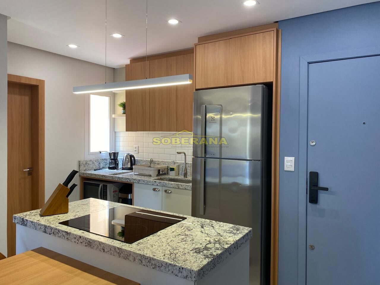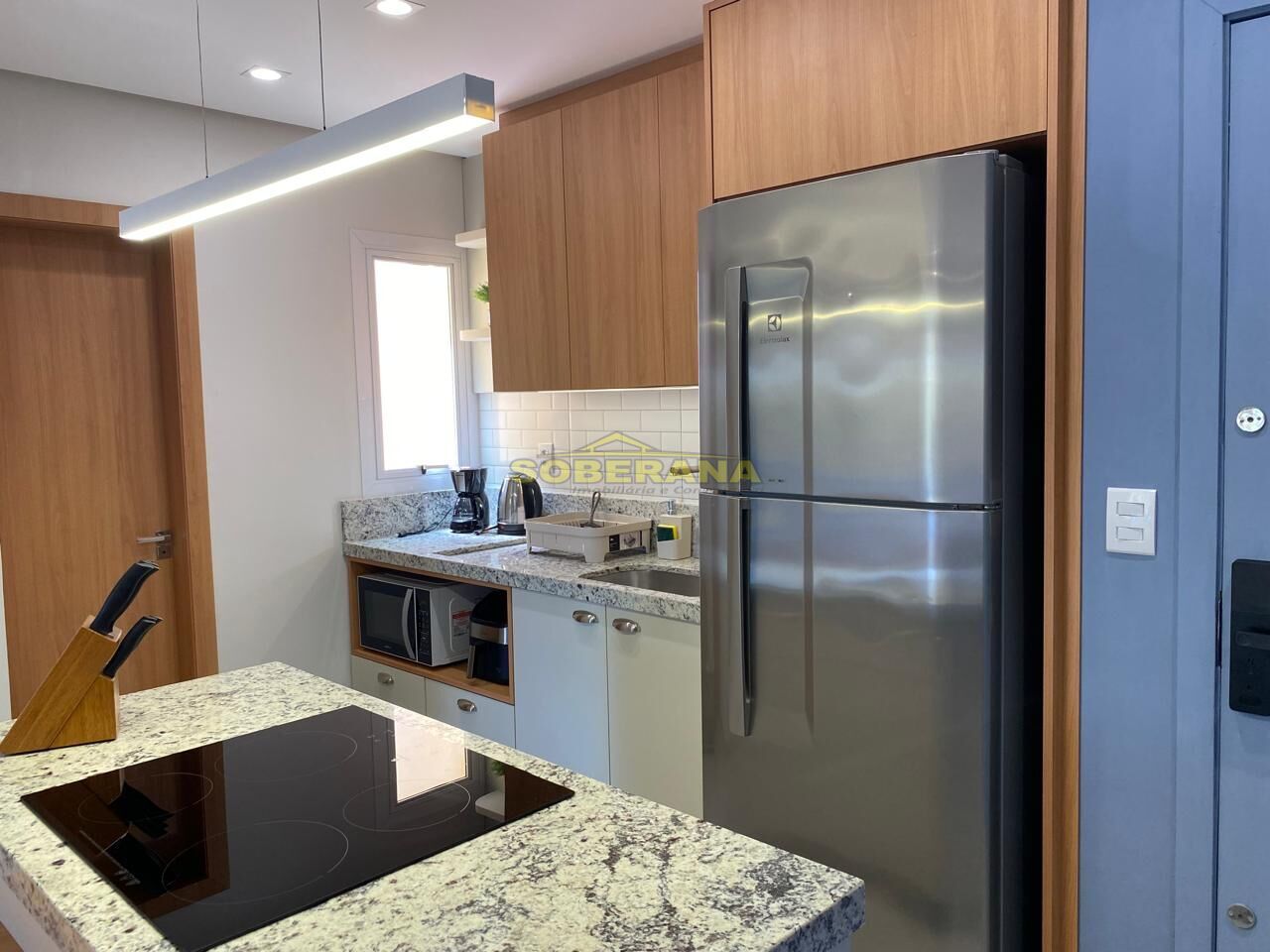 Apartamento reformado composto: 02 Dormitorios, sala e cozinha integradas, banheiro social área de serviço com churrasqueira, moveis sob medida, box coberto.