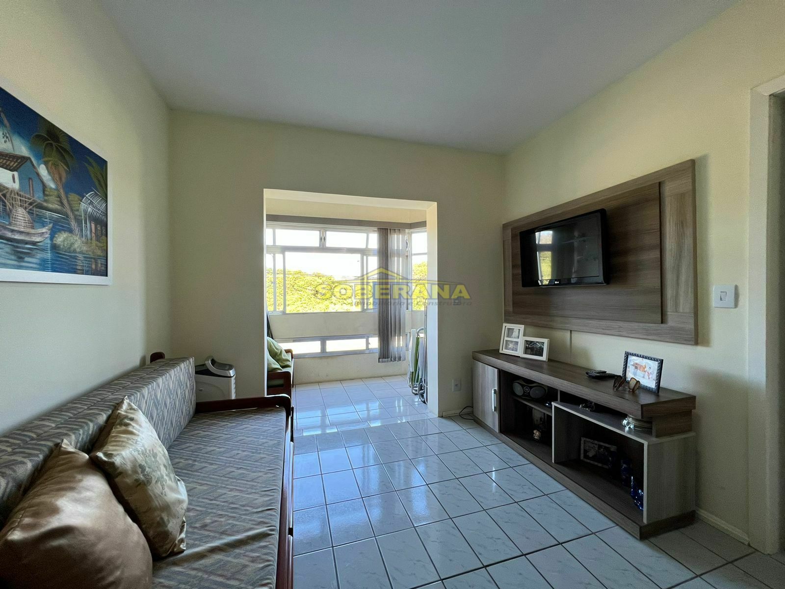 Apartamento 1 e meio dormitório, banheiro social, sala de estar, cozinha, sacada fechada e integrada, área de serviço com churrasqueira, box para o carro, condomínio com infra completa.