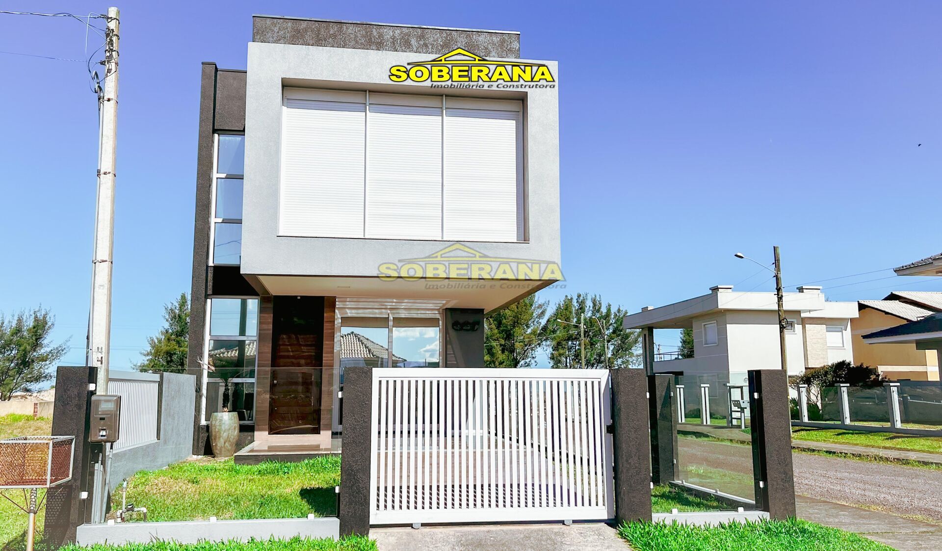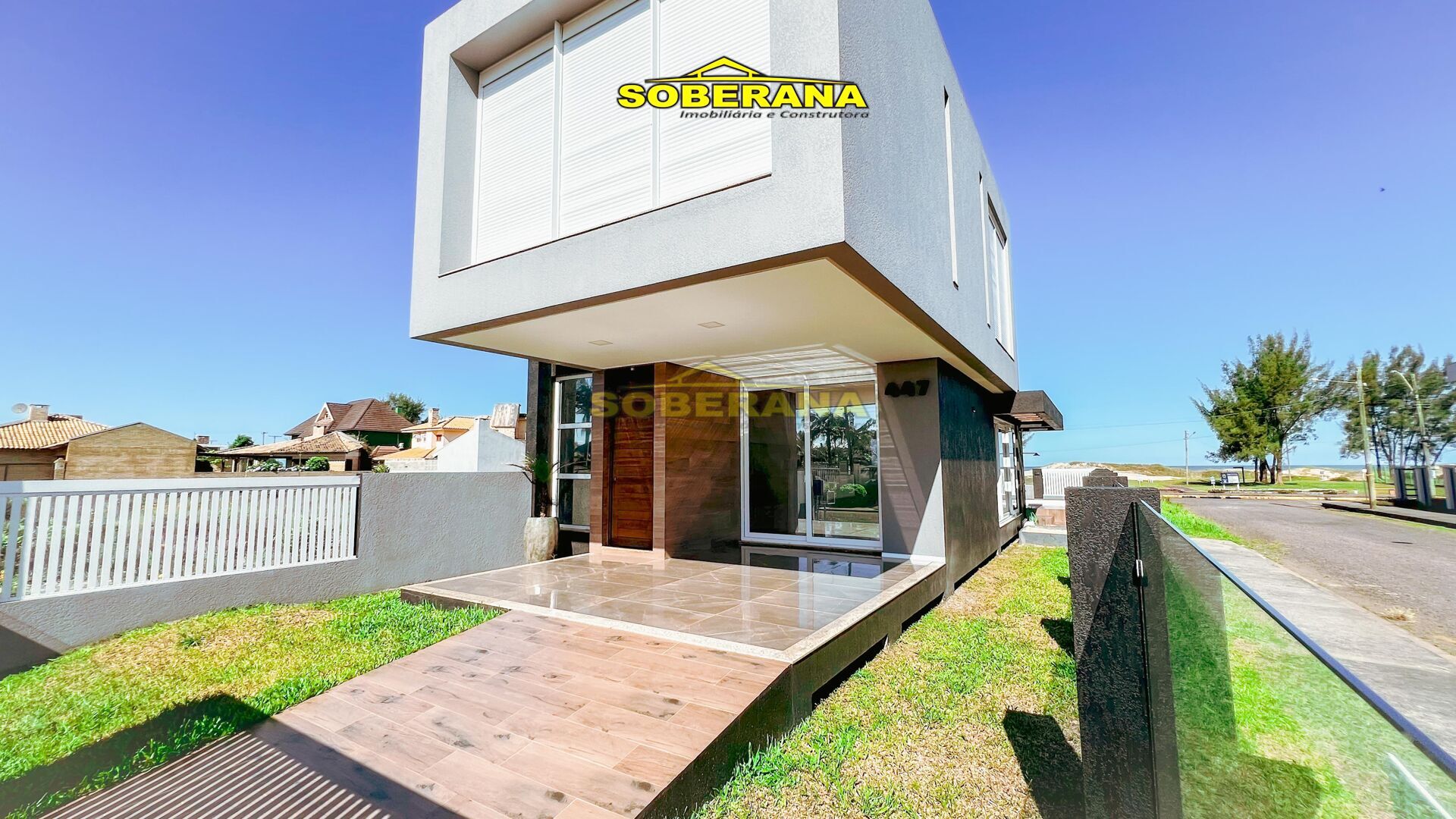 Apresentamos a vocês mais um imóvel feito pela nossa Construtora Soberana… sobrado de alto padrão, com vista eterna para o mar e uma ótima localização, apenas 25 metros da beira mar, localizado no Capão Novo Village este imóvel de 172m conta com 3 suítes, espaço gourmet integrado, lavabo, lavanderia, garagem para dois carros, água quente, piscina e aberturas em PVC automatizadas.