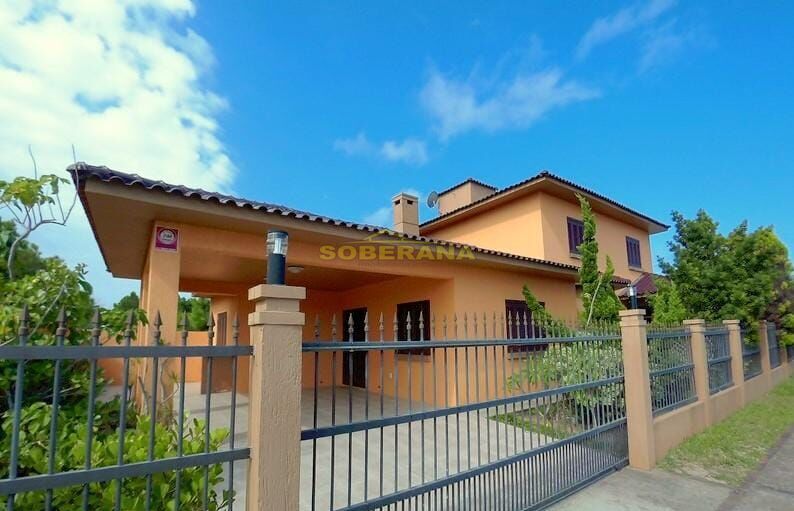 Sobrado de esquina a 100m/mar, 04 dormitórios, 02 suítes, sendo uma térrea ,sala de jantar, sala de estar com lareira, cozinha, lavabo, banheiro social, lavanderia, garagem, espaço gourmet com churrasqueira, pátio fechado, ótima vista do mar