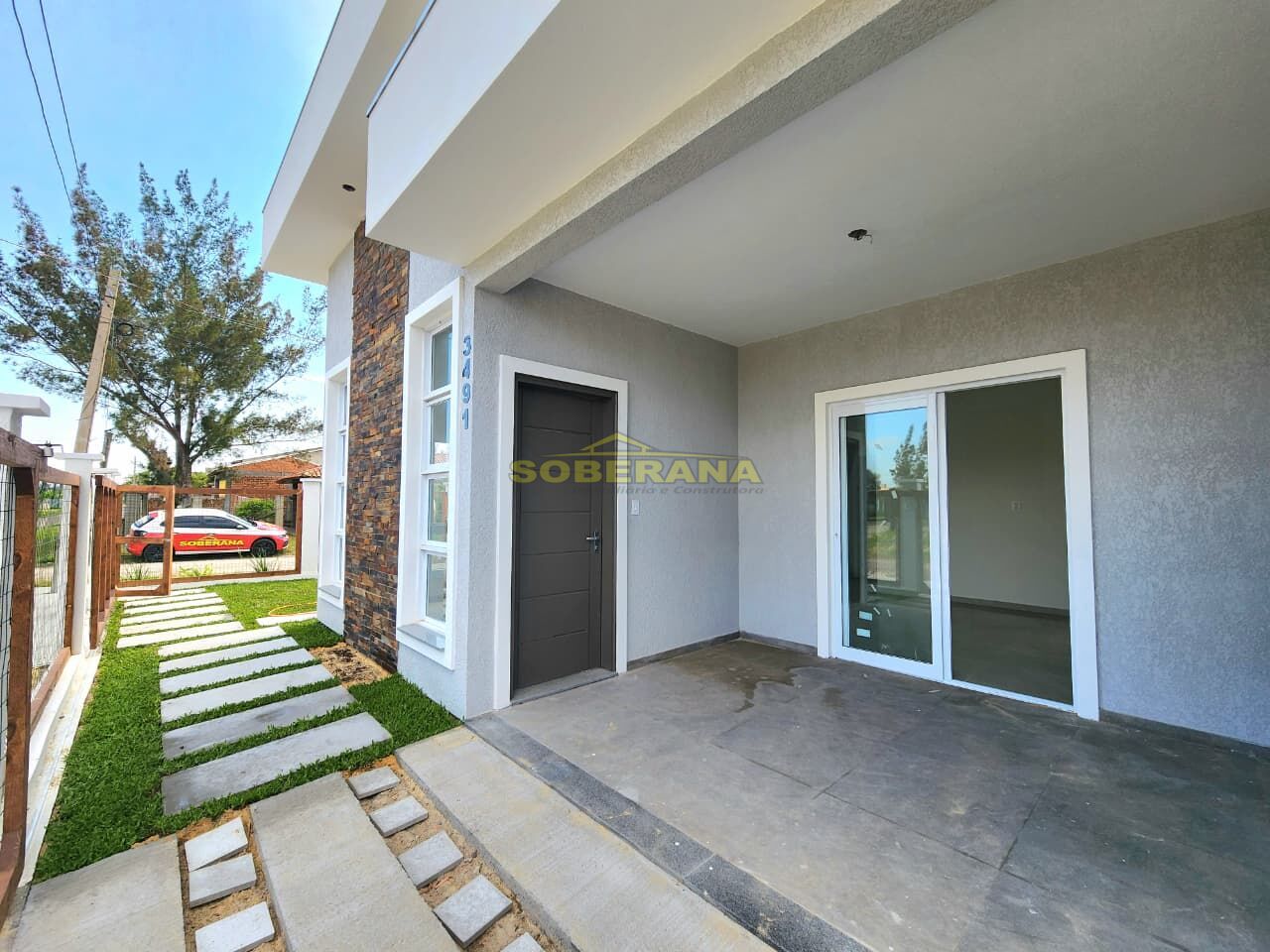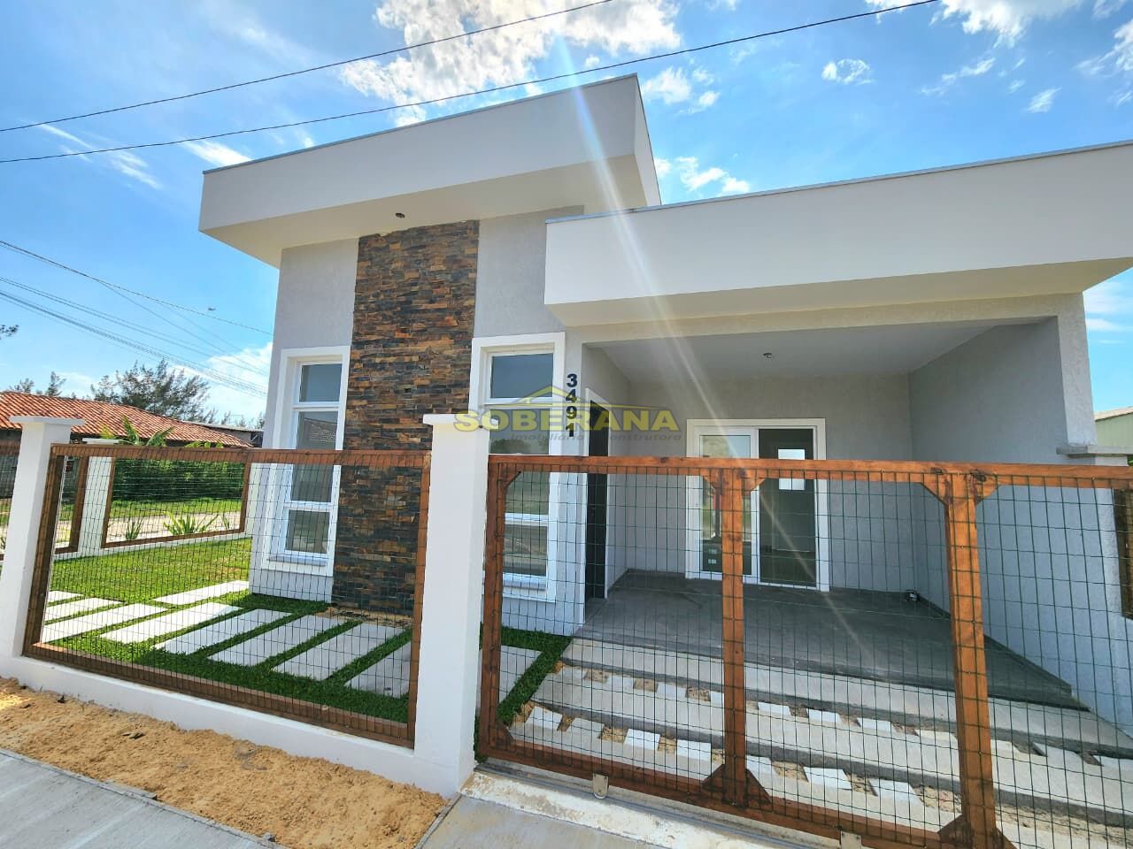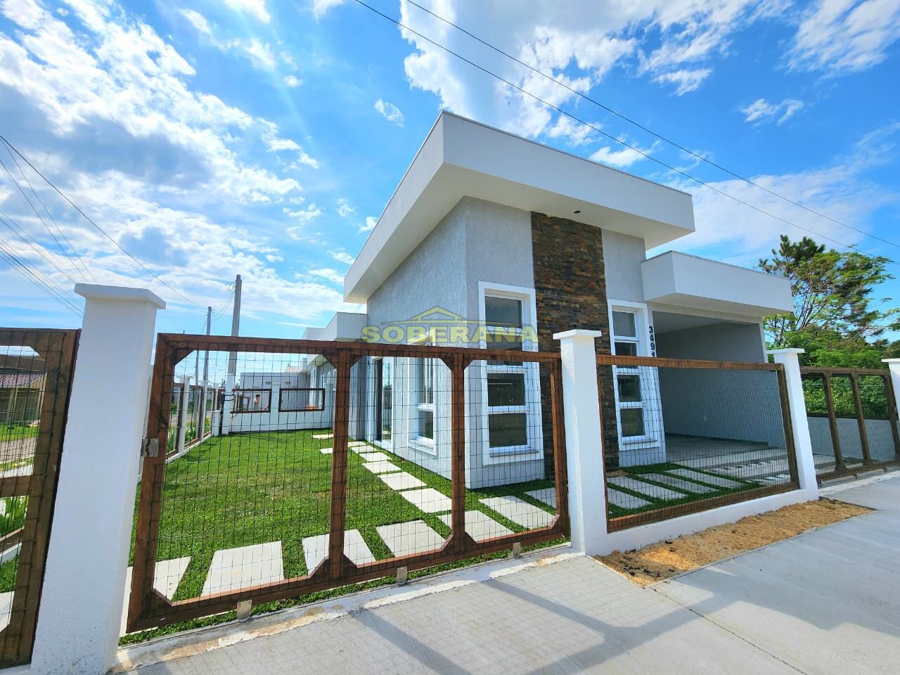 Casa geminada nova de esquina composta 02 dormitórios sendo uma suíte, living integrado, sala estar com pé direito alto, banheiro social, area de serviço fechada, pátio frontal!