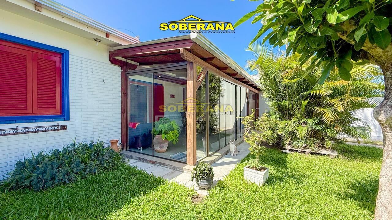 Casa composta por 02 dormitórios, banheiro social, sala de estar e jantar, cozinha estilo americana, ampla área na frente envidraçada, anexo amplo aos fundos com banheiro social, pátio cercado e murado, localizada a 500 MTS do mar aproximadamente.