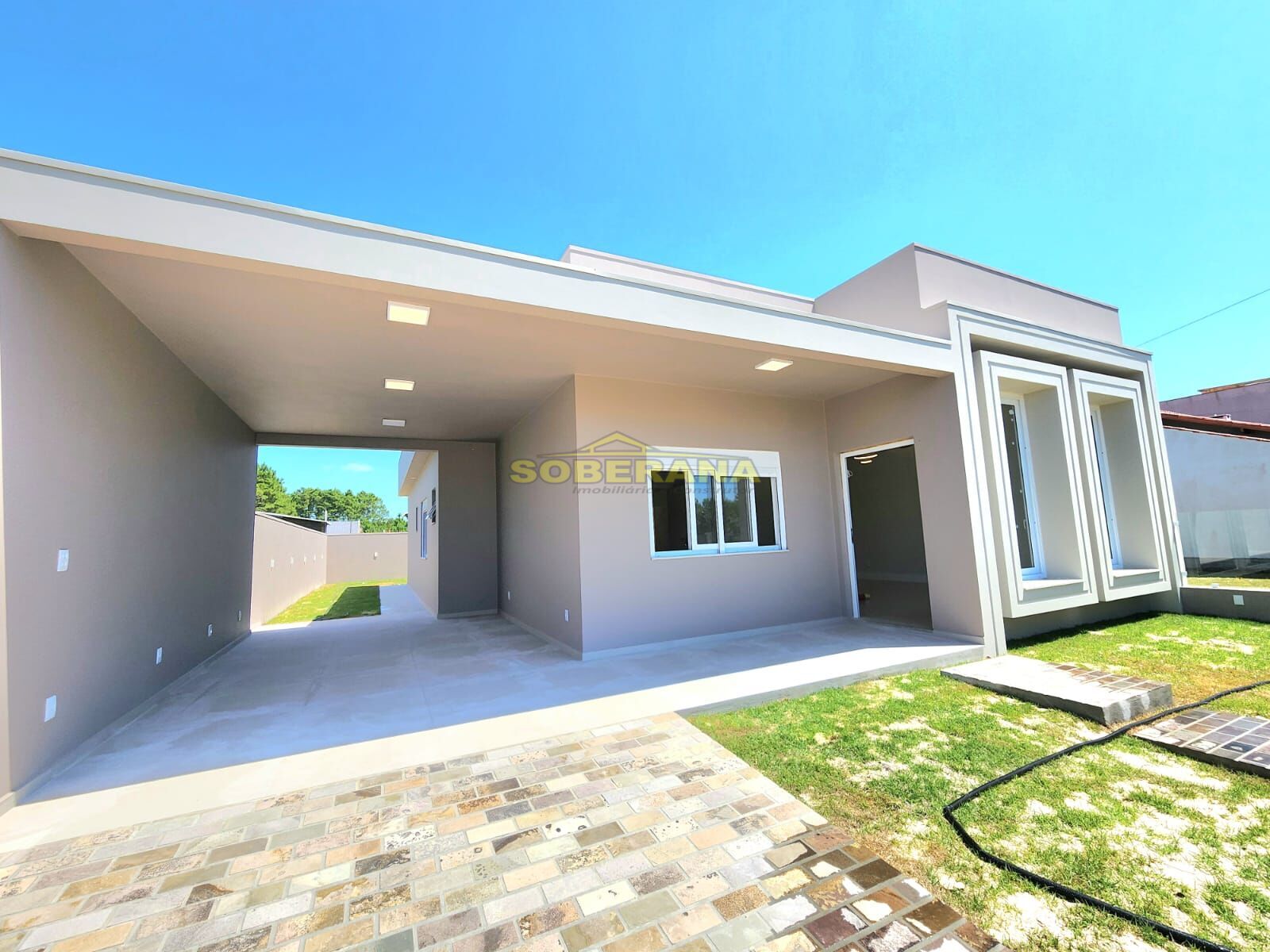 Casa Nova com perfeito acabamento, planta confortável e fachada moderna. Composta de 300m² de área/terreno e com 160m² de área construída, 03 Dormitórios amplos, sendo 01 suíte casal, Pé direito elevado na Sala Estar, Sala Jantar e Cozinha, Cozinha com conceito aberto, Espera para ar condicionado split nos dormitórios e sala de estar, Espera para Água Quente nos banheiros, cozinha e churrasqueira, Gesso e porcelanato na área construída, Garagem ampla e coberta. Possibilidade de receber até 03 veículos, Espera para piscina, Gás central, Lavanderia, Churrasqueira, Iluminação moderna e tomadas dedicadas por ambiente.