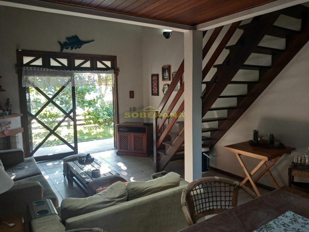 Casa a uma quadra do mar, com 3 dormitórios, sendo um suíte com banheira de hidromassagem na parte superior, mezanino, sacada, banheiro social, cozinha americana, sala de estar, garagem fechada com churrasqueira, área de serviço.