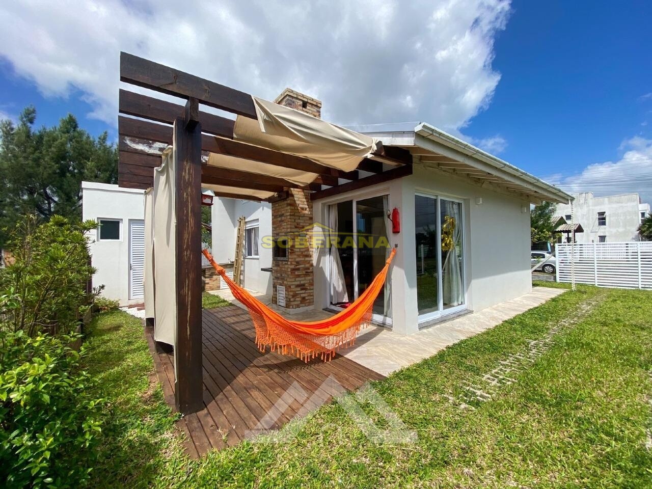 Já na parte externa, um charmoso pergolado com churrasqueira onde você pode esticar uma rede e desfrutar o bom da vida com as pessoas que você ama. A casa possui três vagas de garagem e um lindo jardim.