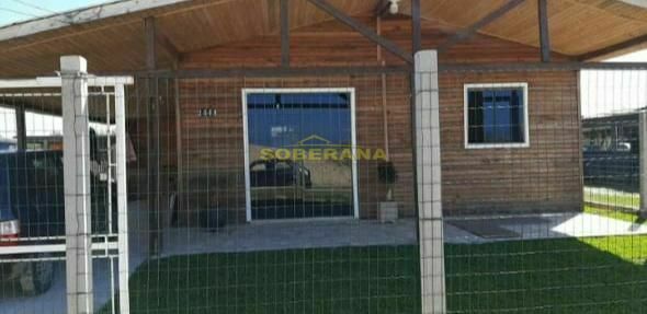 Casa de 3 dormitórios a beira mar com vista eterna para a praia, banheiro social, sala de estar e cozinha integrada, garagem para carro, pátio cercado com espaço em frente e nos fundos do imóvel.