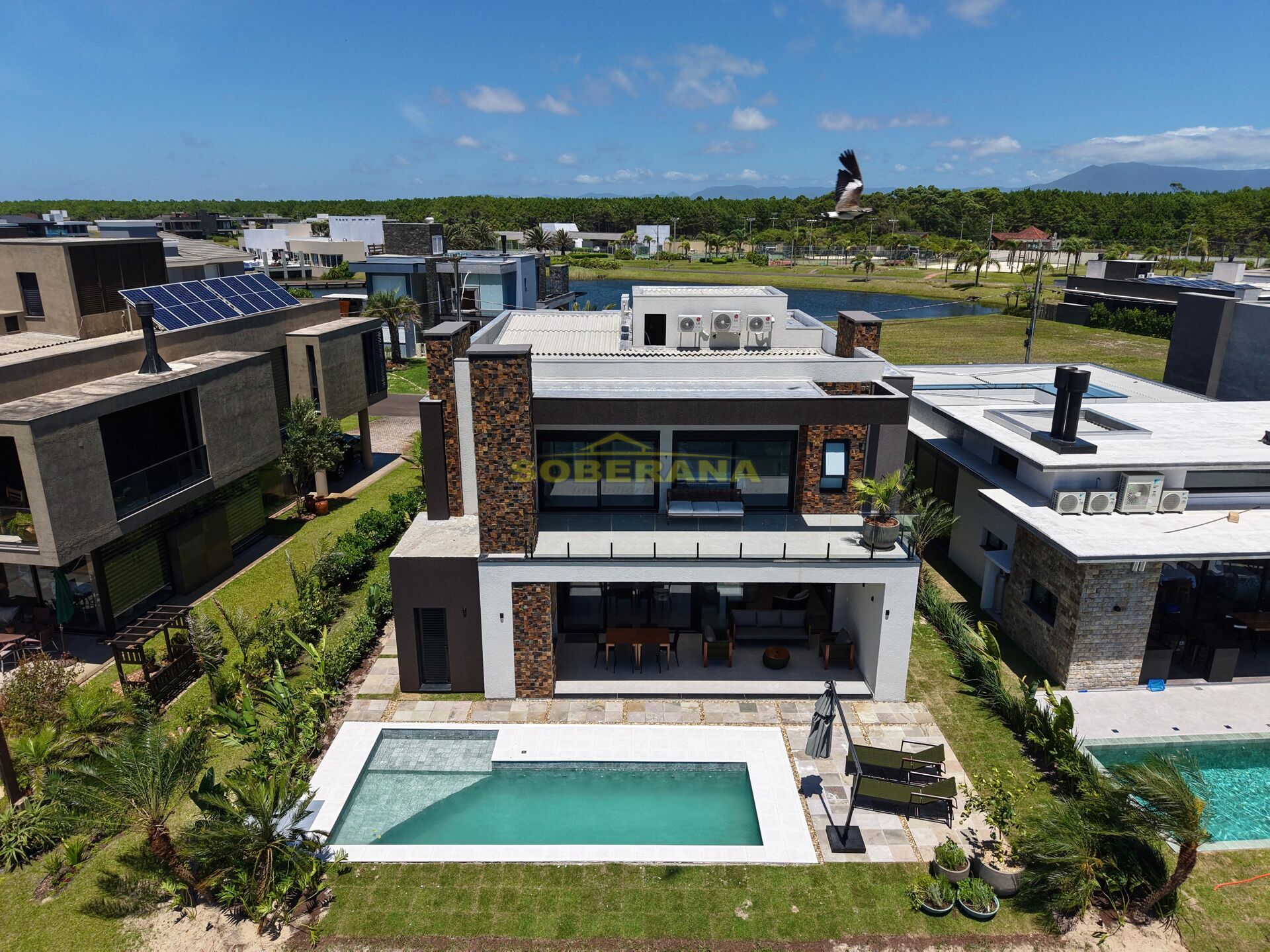 Sobrado Al Padrão em Condominio composta 04 Suítes , Mobiliada e decorada - Cama, mesa e banho, Assinada pela Designer Gislaine Maffei, Piscina com aquecimento , Paisagismo completo com irrigação automatizada e poço, Área privada 344 m², Terreno 456m² fundos para lago!!