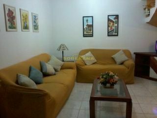 Excelente sobrado com 2 dormitórios, sala de estar, cozinha americana, churrasqueira, área de serviço, 2 banheiros sociais, sacada, box coberto para carro, mobiliado, condomínio com churrasqueiras coletivas, salão de festas e zelador o ano inteiro.