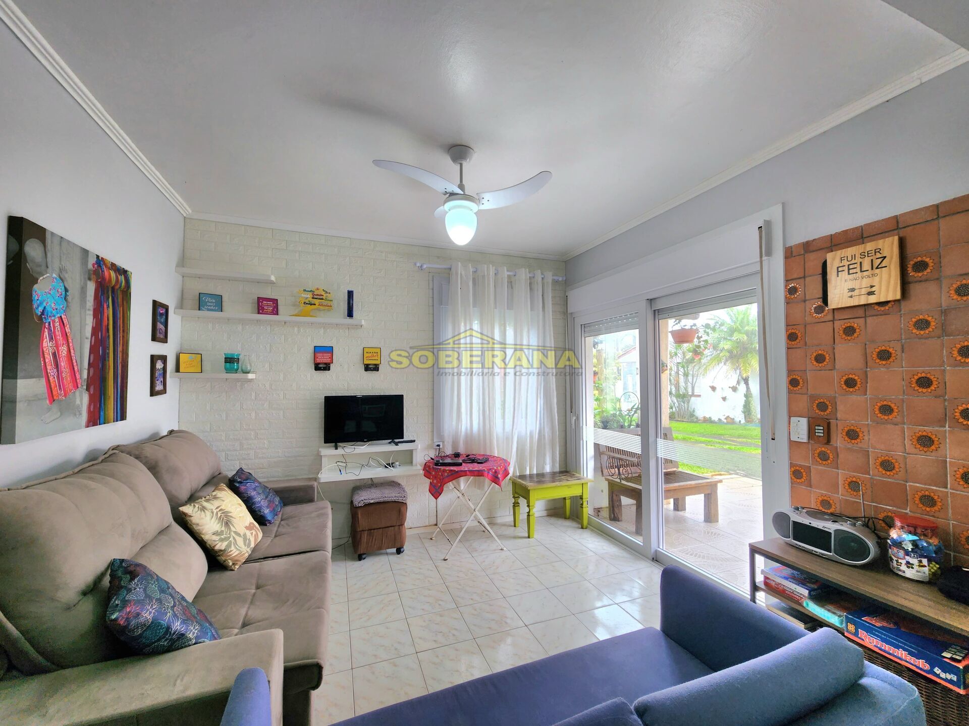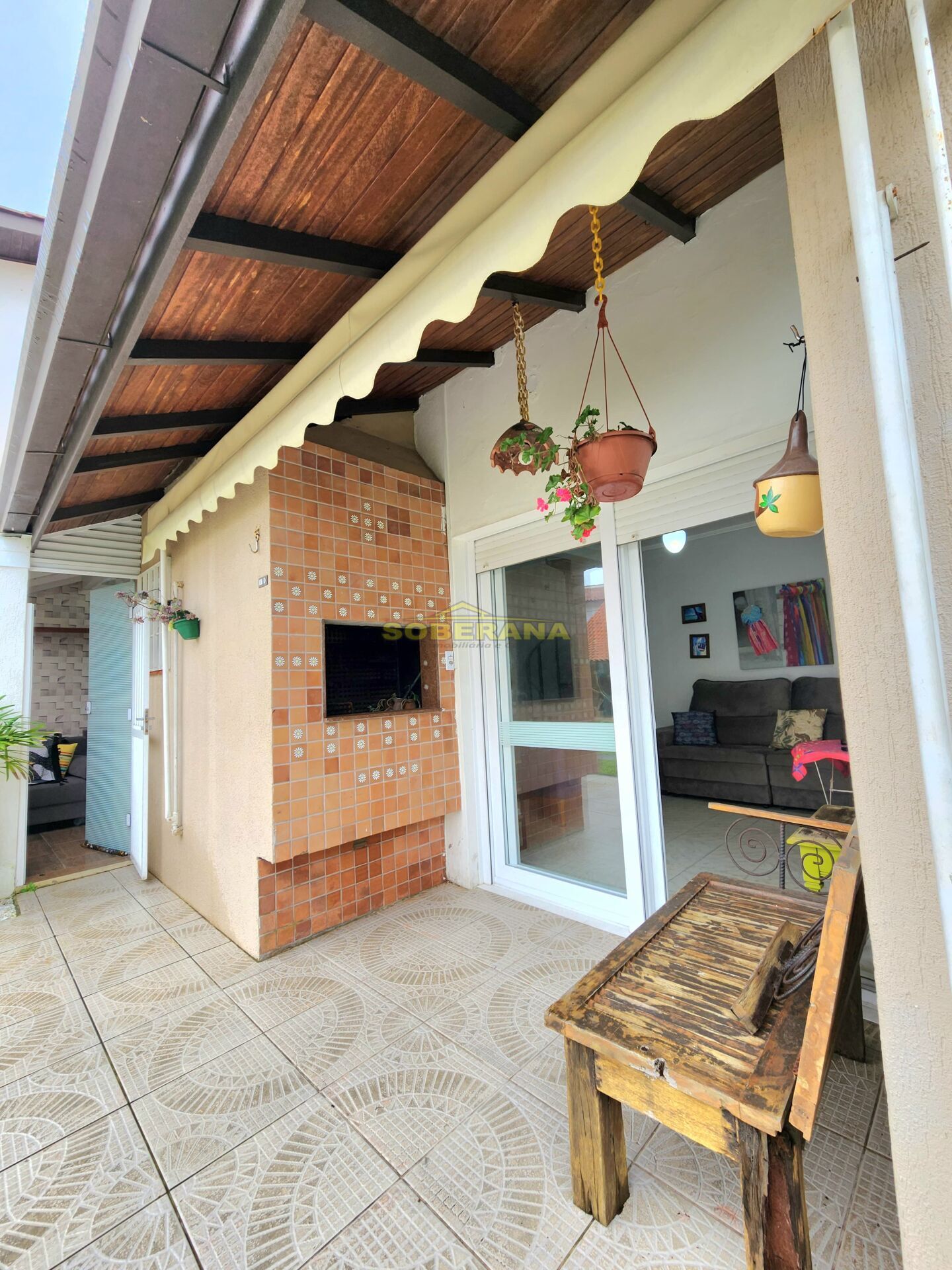 sobrado composto por 02 dormitórios mais mezanino, banho social e lavabo, sala e cozinha integradas, área de serviço, churrasqueira, estacionamento descoberto p/ dois carros, frente sul.